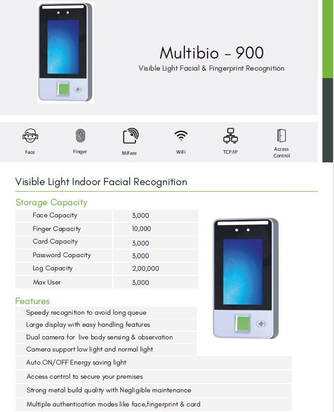 The company stands tall among the successful Suppliers of Face Recognition Time Attendance Systems-AI Facial Readers from Rajasthan. We also make available Economical Range of AI-Facial Recognition Time Attendance System (MultiBio-300, MultiBio-500, MultiBio-900, N-F22), Face Recognition Time Attendance System (N-Series-IndigoFace-6, IndigoFace-8 Pro) and AI Facial Readers- Visible Light Long Distance Facial Recognition Up to 2 Mtr.- SpeedFace 5SE Lite, SpeedFace 5 Pro, SpeedFace 7, SpeedFace 8, AI-Face Mars, AI-Face Mars+QR, AI-Face Venus, AI-Face Jupiter- Linux-Based Access control and Time & Attendance Terminal with Visible Light Facial recognition). The entire range of the Face Recognition Time Attendance Systems is manufactured using advanced technology and quality-tested components. Buyers can obtain the Face Recognition Time Attendance Systems at reasonable rates from us.
